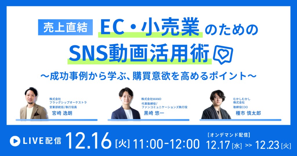 この課題に応えるべく、EC・小売業界の成功企業が実践する「売上直結のSNS動画活用術」に焦点を当てた無料オンラインセミナーを開催します。