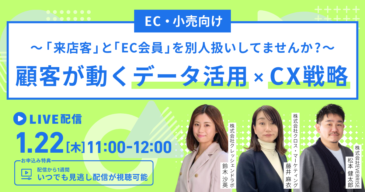 株式会社じげん(本社:東京都港区、代表取締役社長執行役員CEO:平尾丈、東証プライム:3679)が運営する、実名制レビューが特徴のツール・サービスレビューメディア『ミナオシ』(https://3naoshi.com/)は、2026年1月22日(木)に無料のオンラインセミナー『EC・小売向け~「来店客」と「EC会員」別人扱いしてませんか?~データ活用×CX戦略顧客が”買いたくなる”仕掛けとは』を開催します。